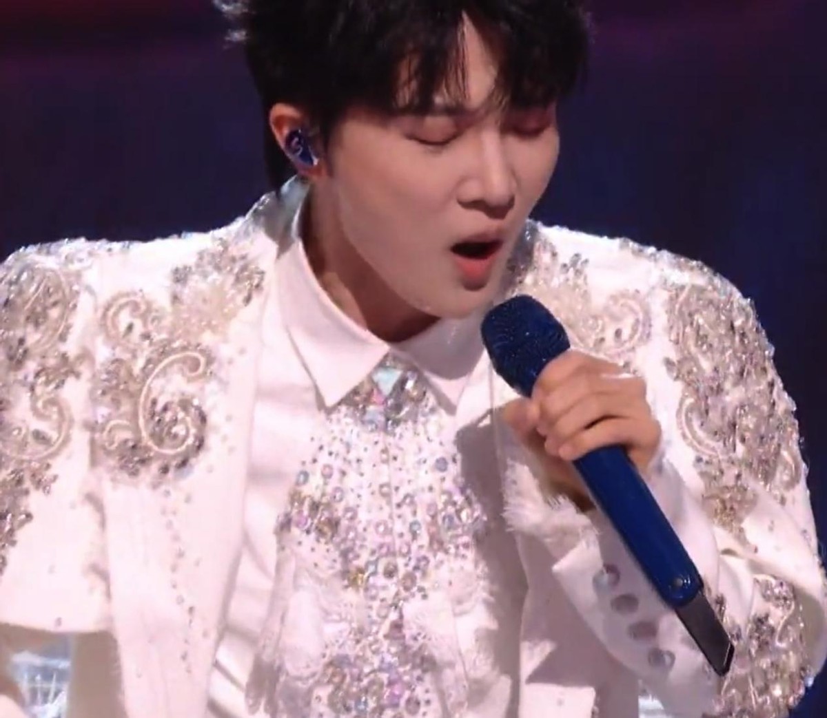 李一桐在转身整理裙摆、与陈哲远互动的间隙,话筒始终垂在身侧,可清晰平稳的人声却从未中断,与陈哲远真唱时的气息起伏形成鲜明对比。