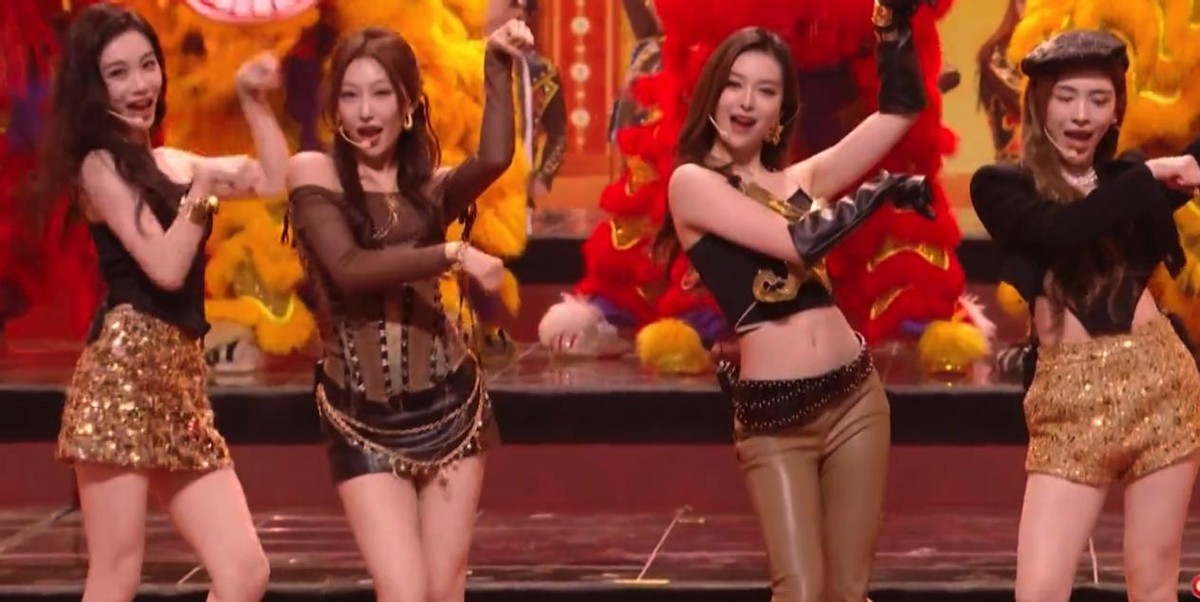 晚会开场的《马力全开迎新年》,沈月、郭俊辰与R.E.D女团的表演直接“开门黑”。