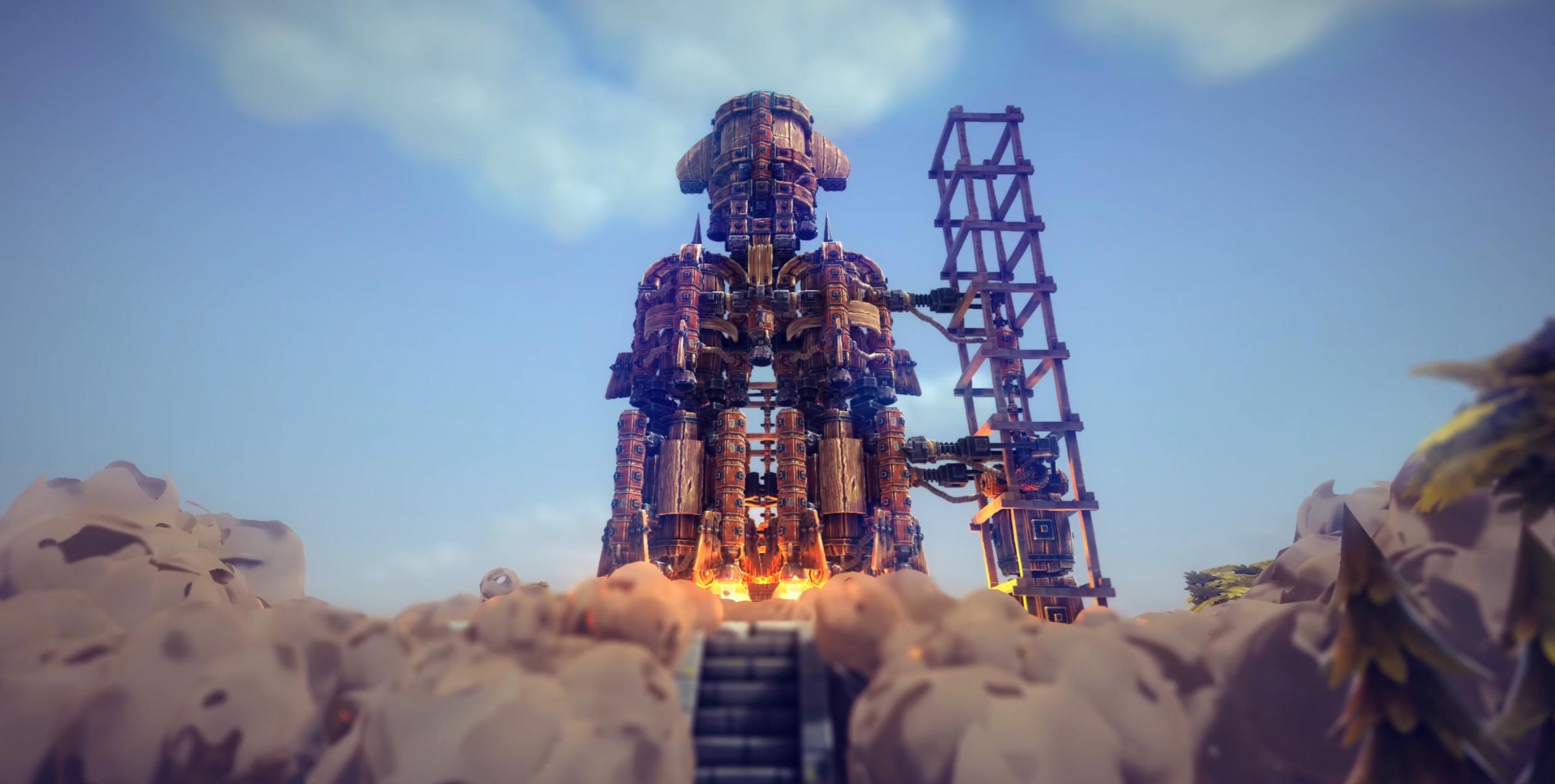《围攻》2020年出1.0,2024年出了海洋扩展包《分裂之海》,口碑一直稳。这游戏没有大厂营销,纯靠玩家口口相传。你能在社区里看到各种离谱的建造方案:有人造了能自动瞄准的投石机,有人造了会变形的高达,还有人纯粹为了看爆炸特效能有多美。