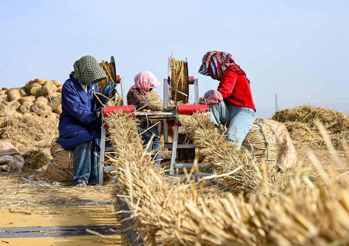 人们把稻草扎成一米见方的格子,埋进沙子里,固定流沙、锁住水分,让沙漠不再随意移动。