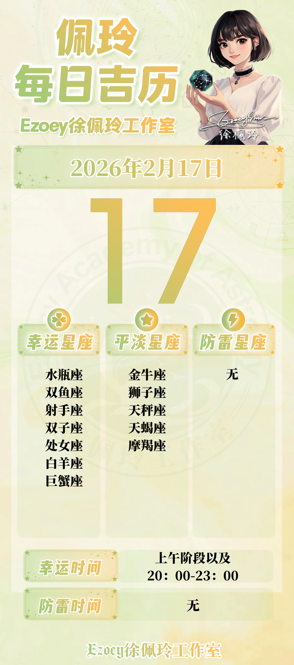【2.17日播报】新月疗愈日 幸运星座:水瓶、双鱼座、射手、双子、处女座、白羊座、巨蟹座——Ezoey徐佩玲26年星座播报
