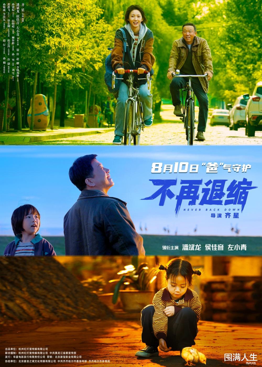 《不再退缩》由曾获第21届中国电影金鸡奖导演处女作奖的齐星自编自导,潘斌龙、侯佳音、左小青领衔主演,讲述了刘中华(潘斌龙 饰)发现并挖掘小女儿刘星榆身上的冰球运动天赋,以永不放弃的精神,坚持十几年治愈女儿的跛足,并打破外人的偏见,鼓励女儿勇敢走上冰球运动之路的故事。