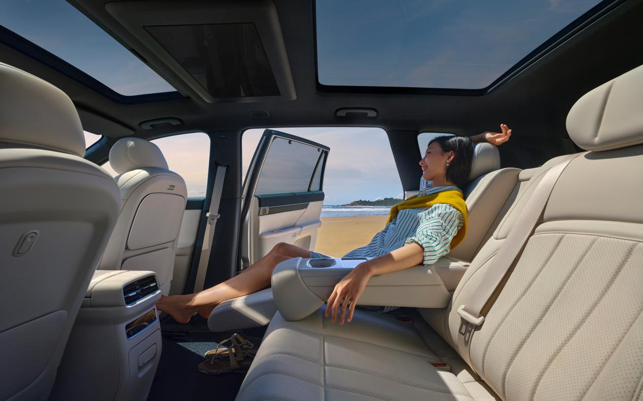 而新车的空间不止于大,还很灵活,当女主人和男主人过二人世界,还可将空间拓展至2.4米超大双人床,充当户外旅行更亲近自然的“大床房”。或是调节成2m+L型双边贵妃榻,实现更彻底的躺姿,堪称午休好去处。