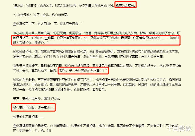 只要有爱情,格心薇也不是非当女王不可。就不要吐槽她恋爱脑啦。人的悲欢并不相通。皇北霜之所以成为皇北霜,就因为她不是格心薇,做出了不同的选择。