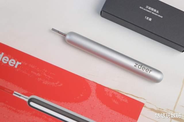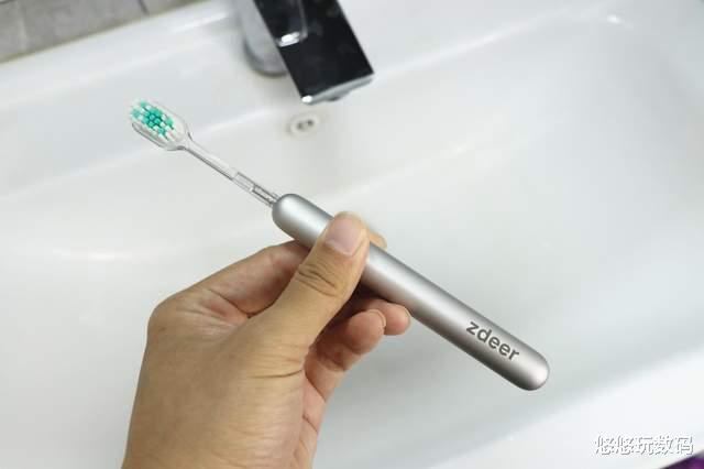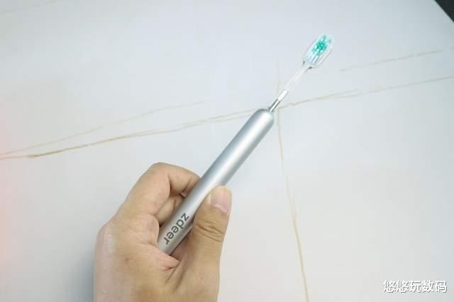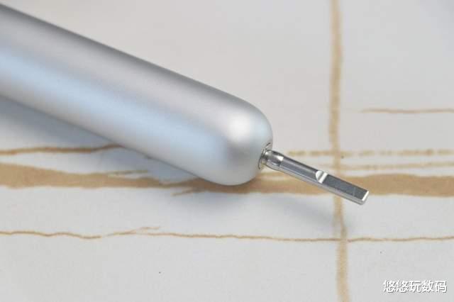 左点轻奢牙刷的整体重量约为73g,相比很多智能牙刷要轻很多,亲测在刷牙时没有下坠感或者负重感,而且搭配粗细适中的刷柄反而提升了手动刷牙的快感,手感相比传统塑料牙刷要好很多。