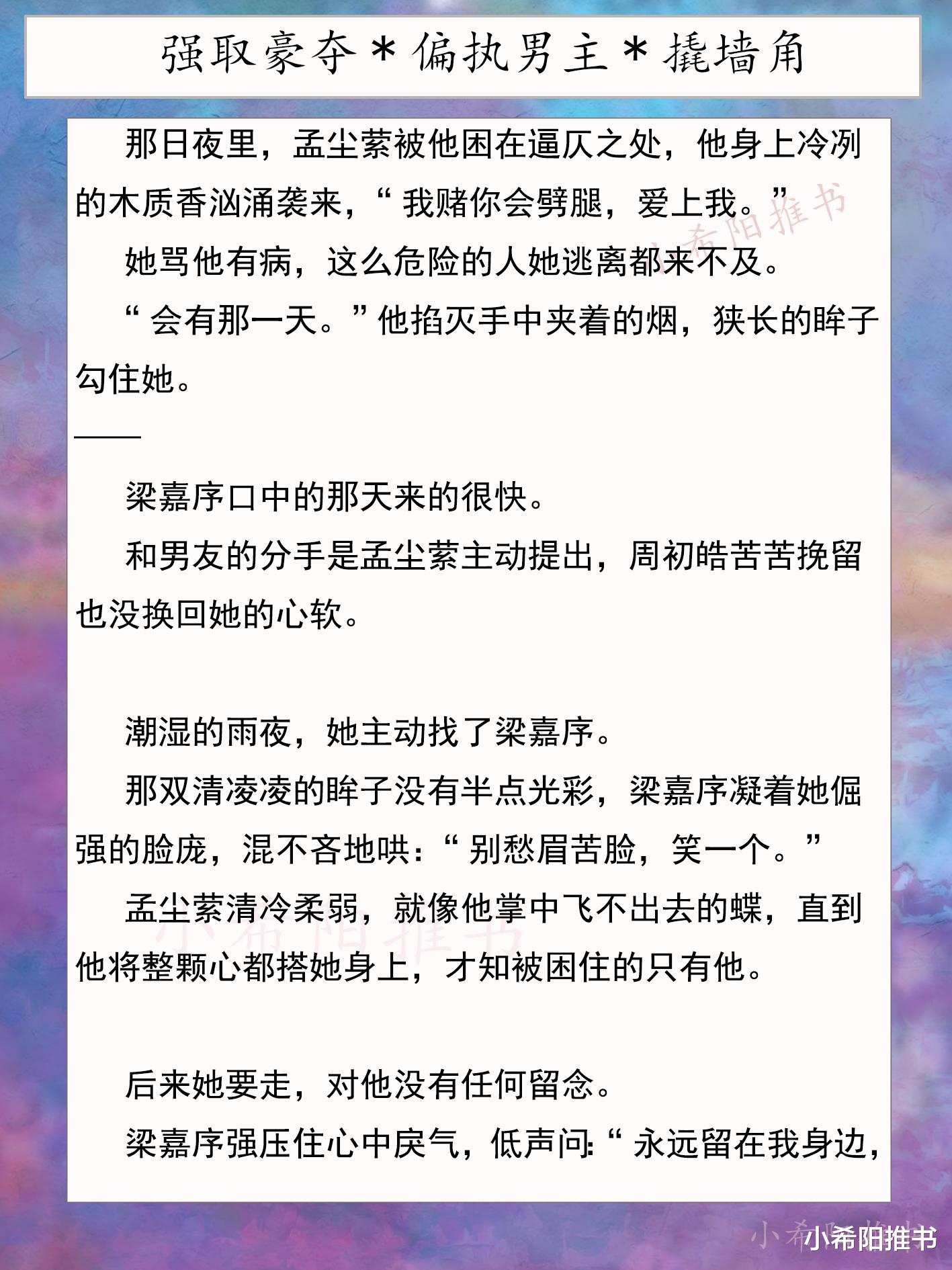 推荐一本京圈权贵强取豪夺文,疯批男主一直在他追她逃,她插翅难飞的路上。四年前一见钟情再次重逢直接开始强势追求,尽管女主当时有男友,直接明争暗抢撬墙角,开始只想用牢笼困住女主,女主一直在跑路的路上,后面放下骄傲卑微追妻!