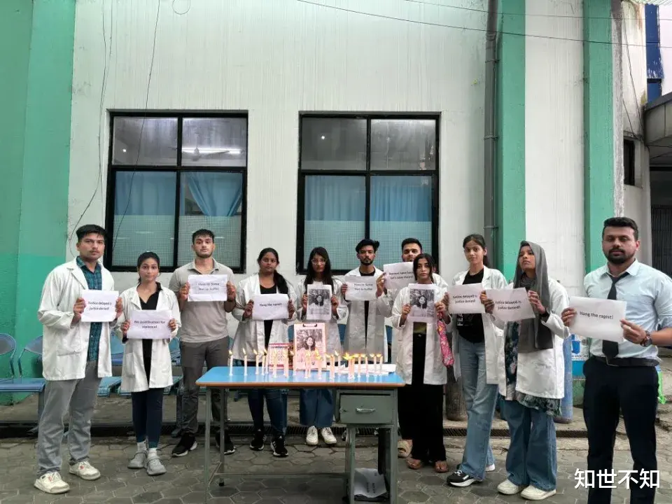 这起令人发指的事件在印度各地引发大规模抗议活动。在加尔各答,数以千计的群众周六凌晨举行烛光悼念集会,他们举着各种标语牌诉求正义,其中一个写着“不能让救人的手流血”。