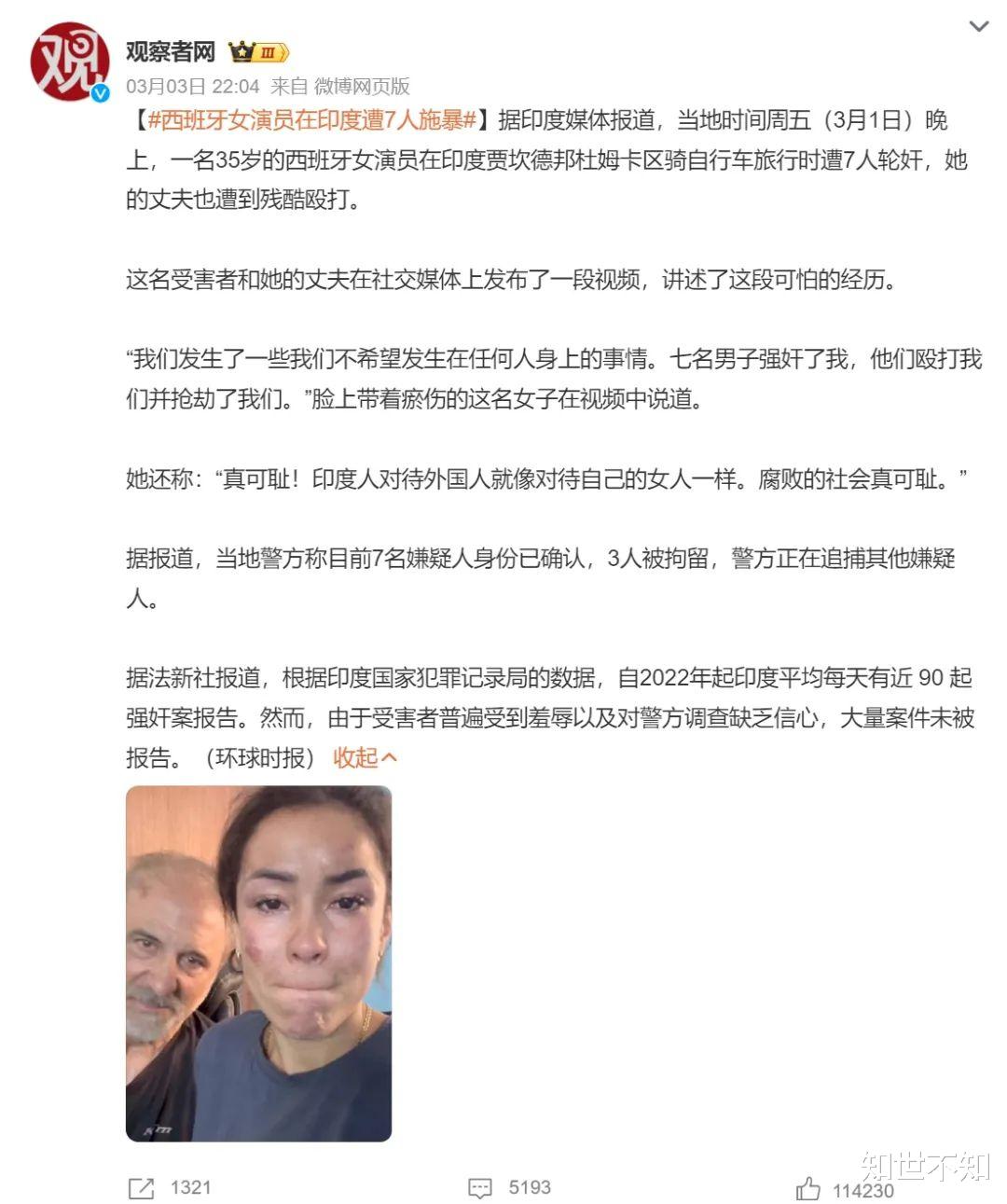 受害夫妻在社交平台和西班牙媒体上公开被害经过,印度警察才“火速”逮捕其中3人,并且决定赔偿100万卢比(约85097人民币)。