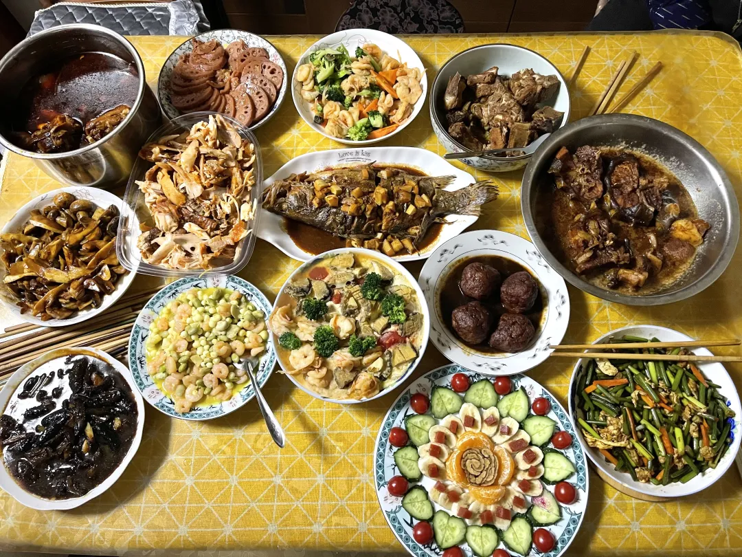 这桌饭,或许没有龙虾鲍鱼的奢华,但一定有妈妈炖了一下午的汤,有爸爸的拿手红烧肉,有寓意“年年有余”的鱼,有象征“团团圆圆”的饺子或汤圆。