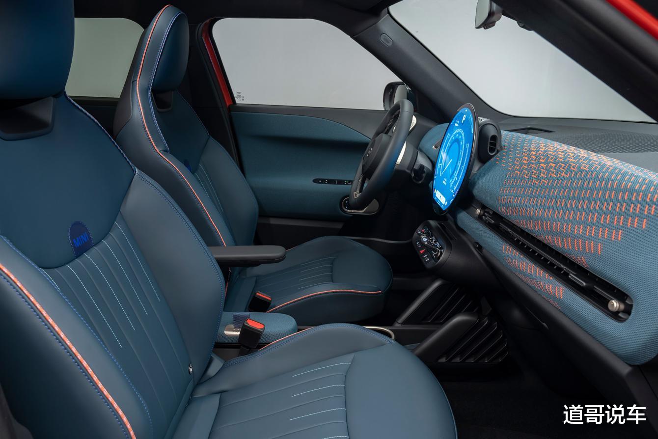 车内保留了致敬经典Mini车型的三个关键设计元素,即更易于操作的全新方向盘、独特的圆形OLED中控屏、经过改造的5联式拨杆。