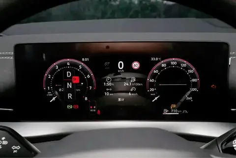 前脸部分,采用了家族式格栅设计,宽大的进气格栅与大灯组紧密相连,内部点缀着精致的镀铬饰条,有效提升了车辆的豪华感。部分版本采用了渐变镀铬格栅设计,再搭配上可点亮的车标,进一步增强了科技属性。车辆配备了全新造型的IQ.Light矩阵大灯,具备近光、远光、动态转向灯等多种功能,还拥有离回家照明模式。经过熏黑处理的灯组与黑色饰板贯穿连接,从视觉上拉宽了车头的宽度。前包围下方采用贯穿式进气口设计,并搭配亮黑色饰条,强化了整车的运动氛围。