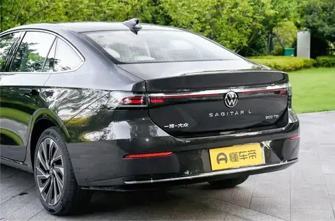 车身侧面,一条腰线从前翼子板一直贯穿至车尾,微微上扬的线条营造出一种俯冲的姿态。车顶线条平缓过渡,与修长的车身比例相搭配,增强了车辆的优雅感。车辆配备了隐藏式门把手,采用机械 + 电动混合结构,支持感应、触摸、遥控解锁等多种方式,并且针对低温环境进行了优化,具备破冰功能。此外,还配备了18英寸运动轮毂,翼子板处装饰有“300TSI”动力标识,提升了车辆的辨识度。