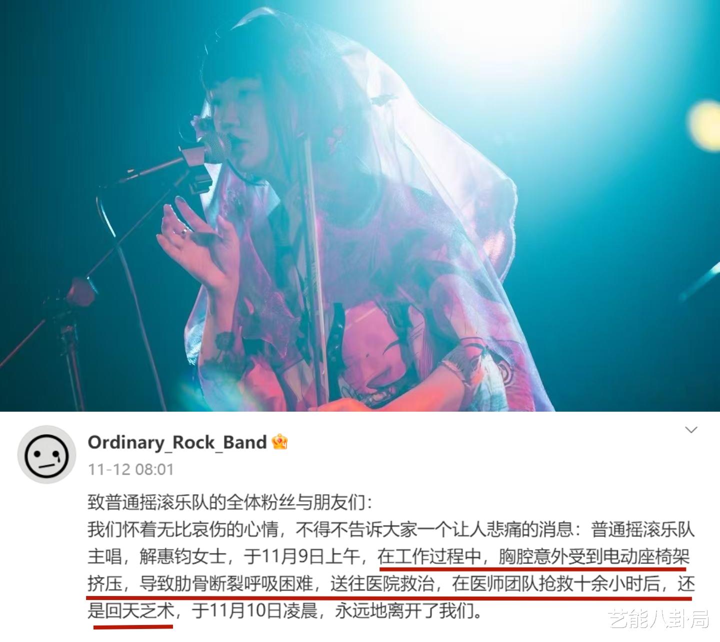 女歌手阿珍被“电动座椅架”挤压,抢救十几个小时后不幸去世。