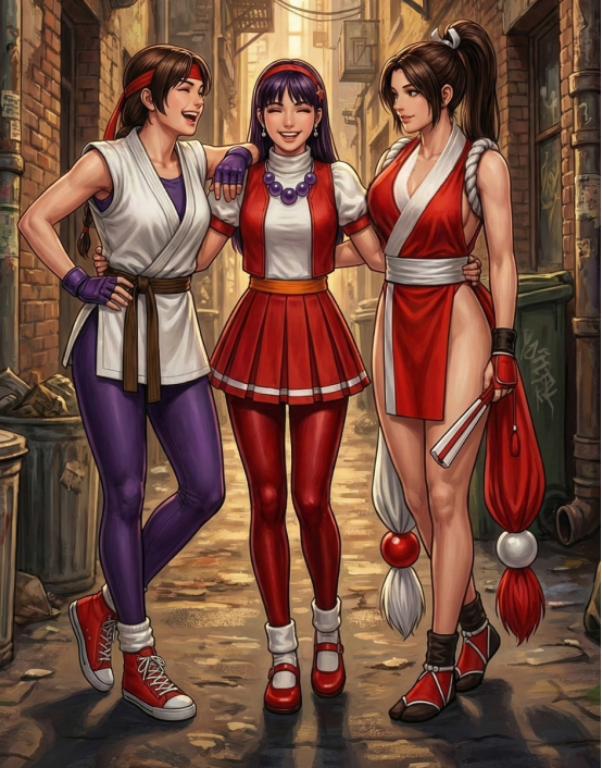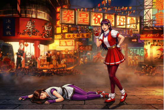 在《拳皇99》故事中,雅典娜已经完成了蜕变,她成了为火遍世界的偶像歌手,因为拳皇比赛要4个人才可以参加,所以雅典娜也欢迎了新队员包,由于包子超能力已经消失,这让雅典娜把更多的关爱给了这位逗比队友。