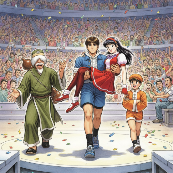 在《拳皇95》的故事中,由于超能力队表现出色,得到很多选手的认可,最后的结局,雅典娜问师父,我们的宿命是什么?镇元斋说:我们要与所有的邪恶势力战斗到底。