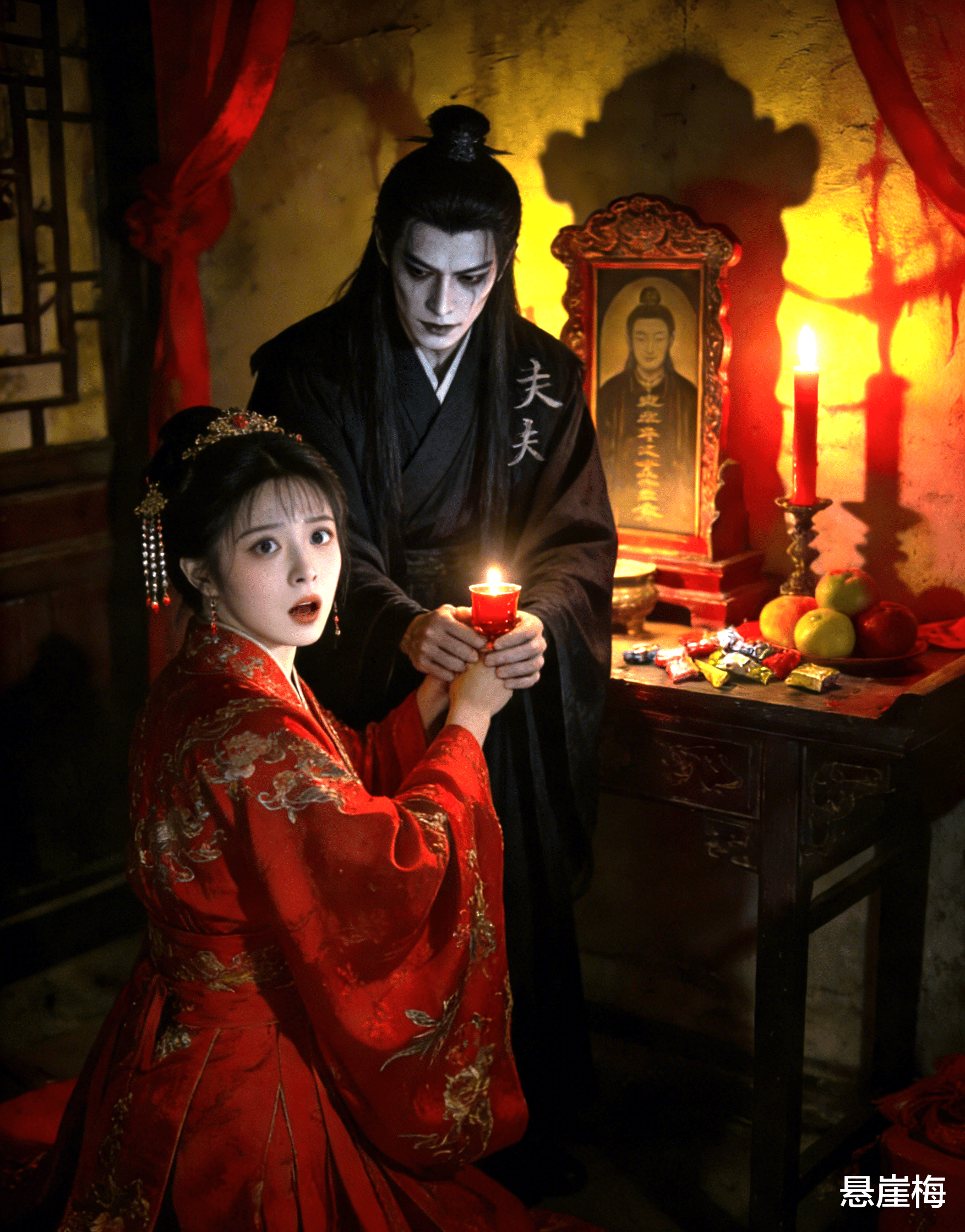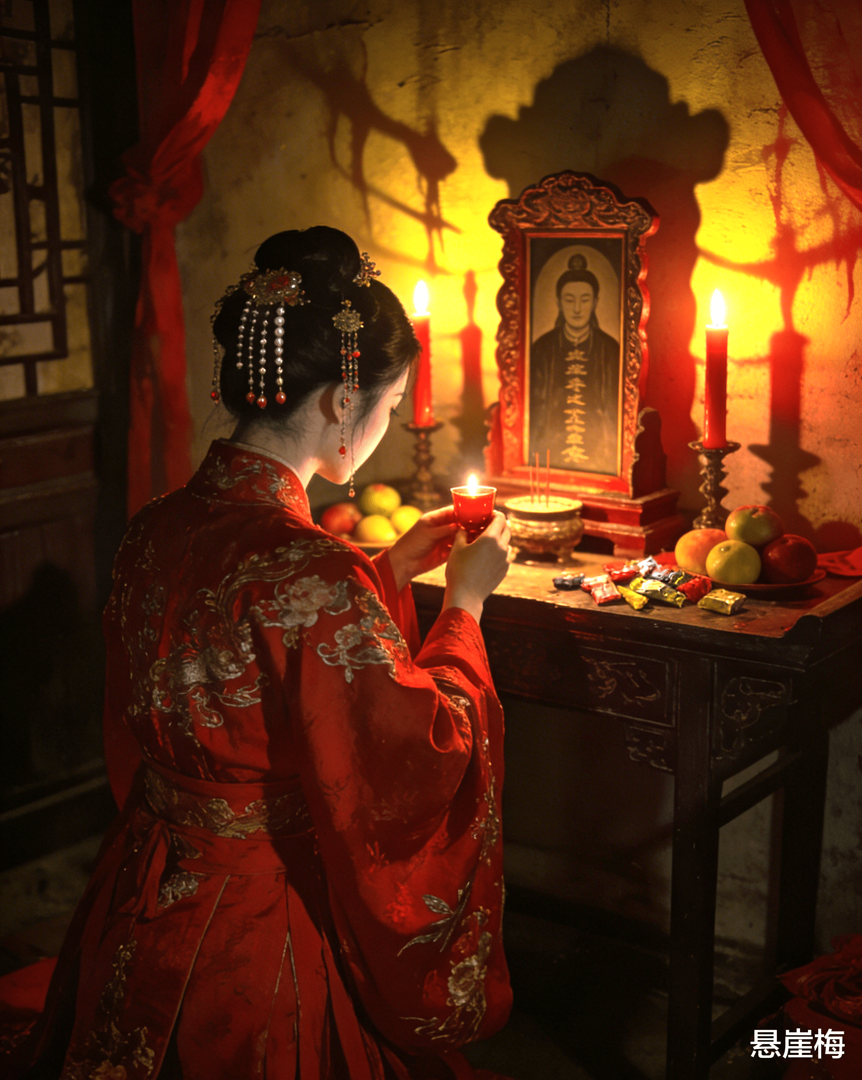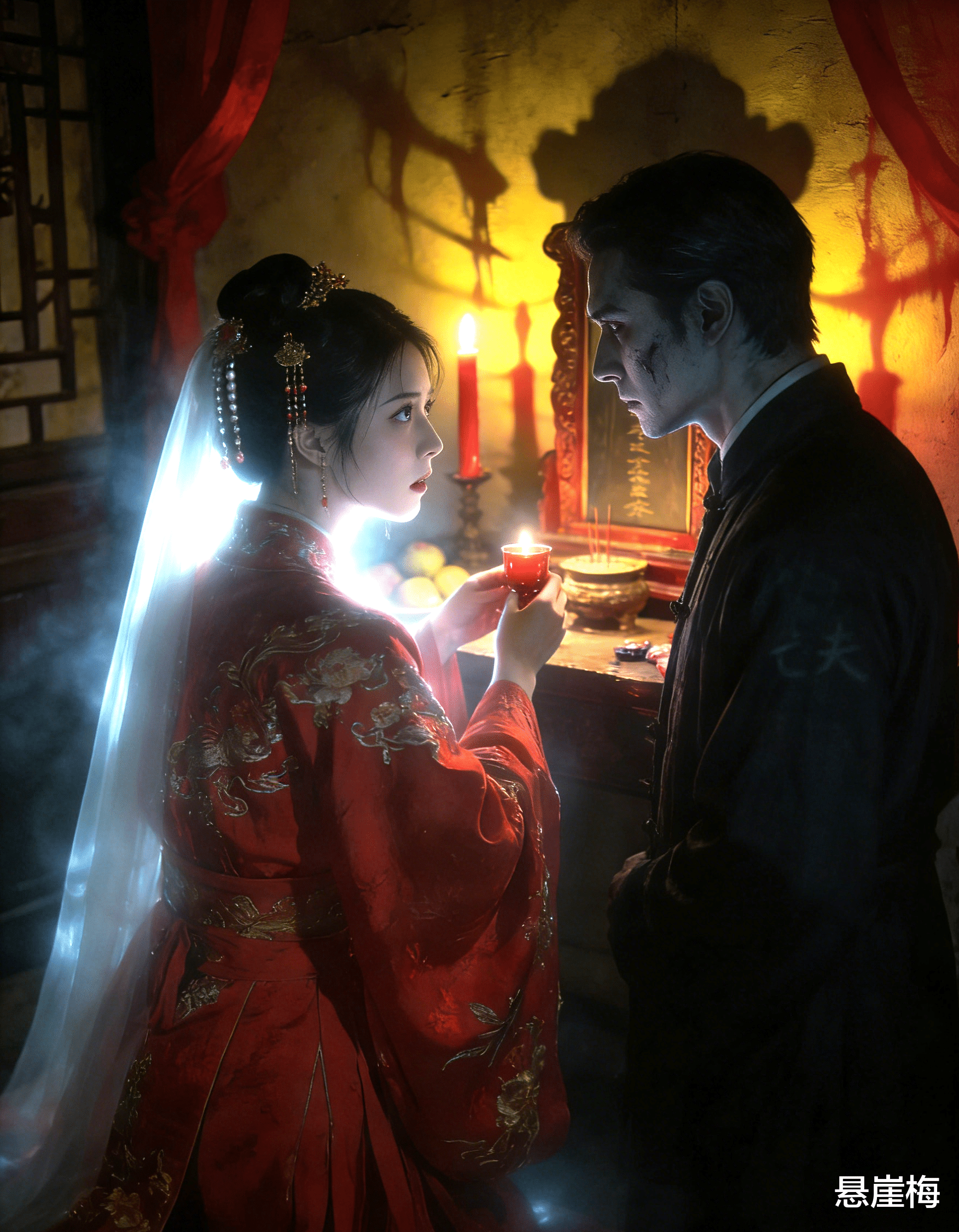 房间里,又只剩下我一个人,还有那盏摇曳的孤灯,以及案几上的灵牌。可这一次,我不再感到绝望和恐惧,心中多了一丝希冀,多了一丝决绝。我抬手,轻轻抚摸着发间的玉簪,脑海中回荡着王鉴的话,泪水缓缓滑落,滴落在嫁衣上,晕开一小片湿痕。