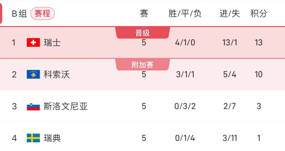 瑞典在预选赛1平4负小组垫底,但已经确定可以通过欧国联途径获得附加赛席位,仍然有望进入美加墨世界杯。