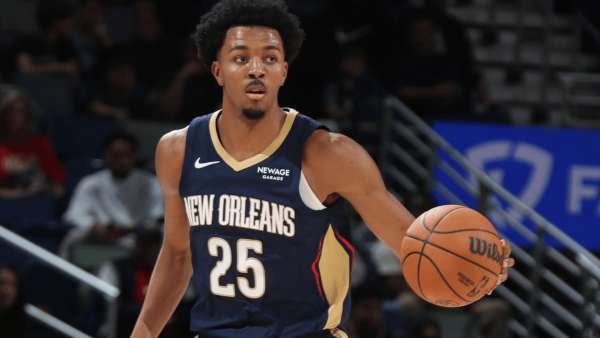 鹈鹕断球,墨菲迅速发动转换进攻,突破到罚球线迅速发现右侧底角落位的迈戈文斯打了国王卡特的转身不及完成助攻连线: