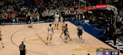 墨菲弧顶接应接球后,和奎因打弧顶挡拆配合,利用雷诺的弱延误,墨菲行进间右手迅速出球给到奎因,后者占据身位优势高举高打完成篮下终结。