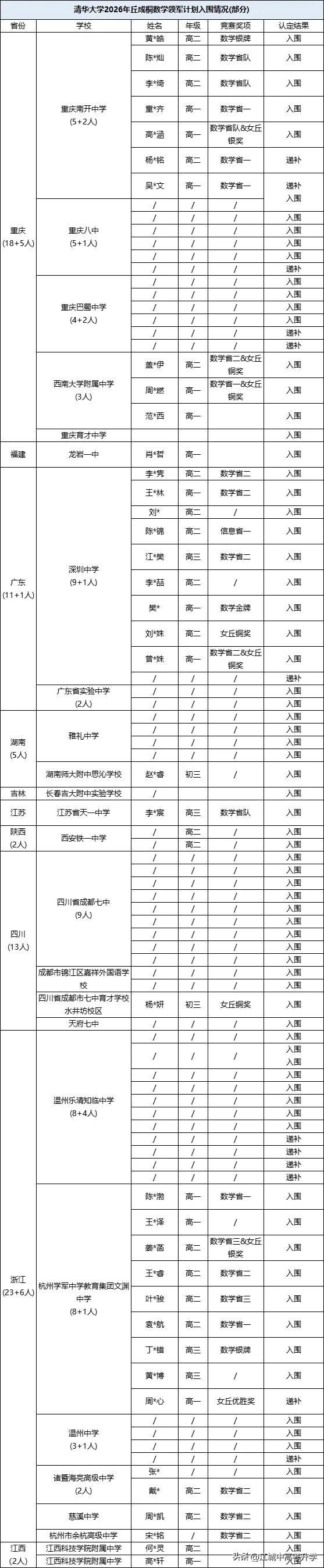清华大学2026丘成桐数学领军计划入围89人名单出炉,曝光的89人大名单中满屏的浙江、重庆、四川、广州的选手。