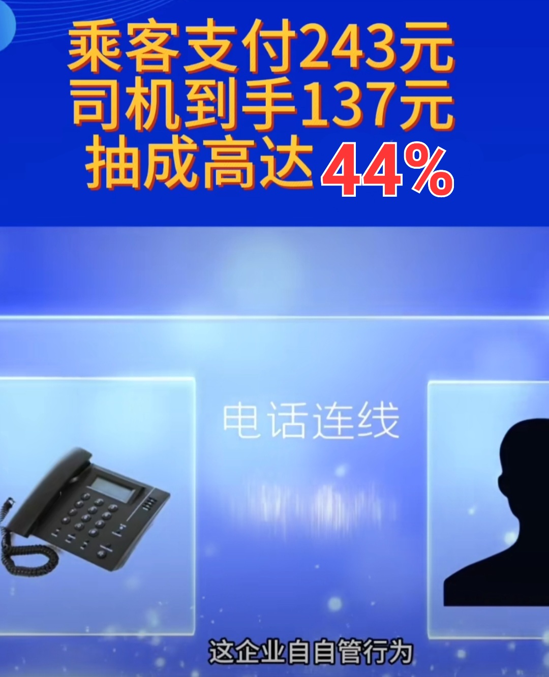 近年来,网约车平台抽佣比例太高的时有发生。曾有网友爆料称,乘客从北京全季酒店打网约车到大兴国际机场,支付了243元的运费。乘客要求驾驶员开空调,驾驶员却说运费太低,仅收入137元,不愿意开空调。后来乘客询问网约车平台为什么明明支付的是243元,驾驶员仅收到137元,抽佣比例不能高于30%,平台却回复抽佣多少是企业自管行为,驾驶员如果对平台的抽佣比例不满意,可以换一个平台。