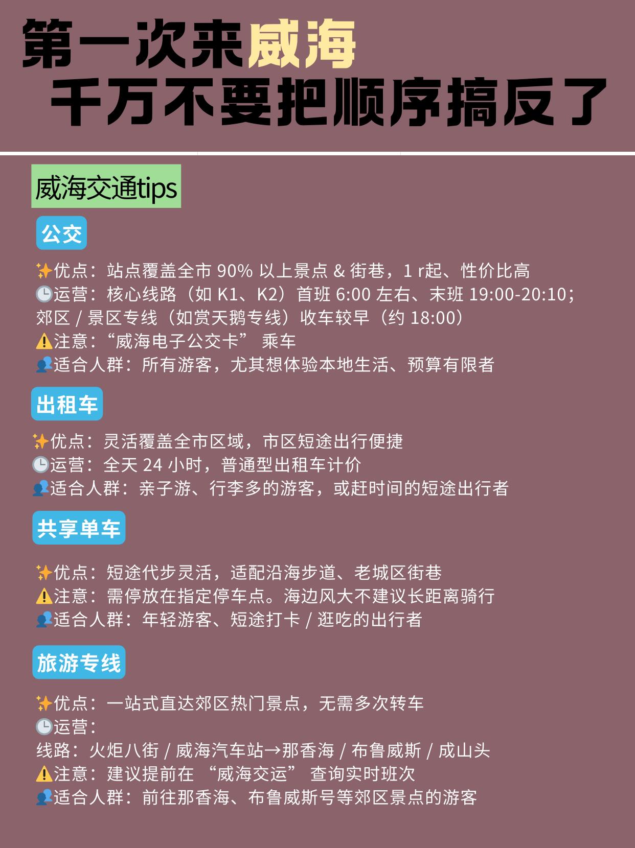 刚从威海玩完回来,写点真实感受,都是实打实的体验哈😊
