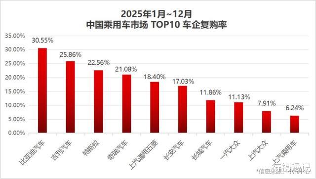 依据某汽车研究院发布的《2025年车企复购率榜单》,比亚迪老车主复购率高达30.55%,荣登榜首,显著领先于吉利、奇瑞、长安等传统主流车企。比亚迪成功打破了汽车行业中“规模扩大必稀释忠诚度”的固有认知。