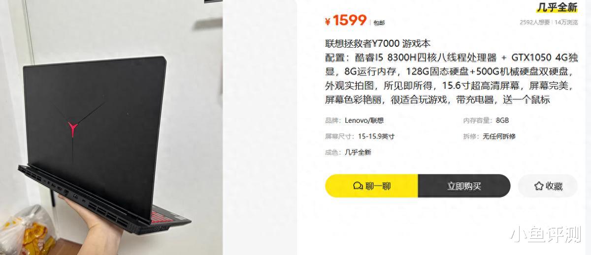 想买一台性能不错的笔记本,但又不想花太多的钱,二手鱼里淘货自然成了第一选择,我淘到一款联想拯救者Y7000,卖家要价1599,配置感觉还行,虽然是5年前的本子,但仍然能应付一般的游戏需求,当然日常使用是更不在话下了。