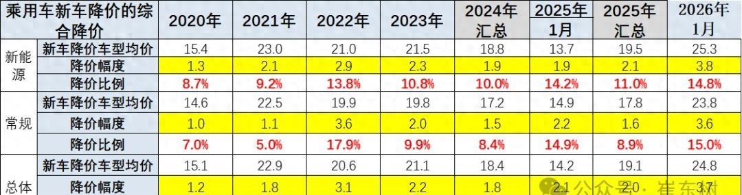 这个月买车的人估计都懵了。2026年1月,新车平均降价3.7万元,比去年全年平均降幅高了快4.5个百分点。不是新能源在拼命甩,也不是燃油车在偷偷清库存,而是两边一起降——新能源平均降3.8万,燃油车平均降3.6万,差得连零头都不够。
