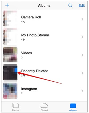 步骤1.打开iPad的照片应用程序,单击“相册”选项卡,然后点击“最近删除”相册。