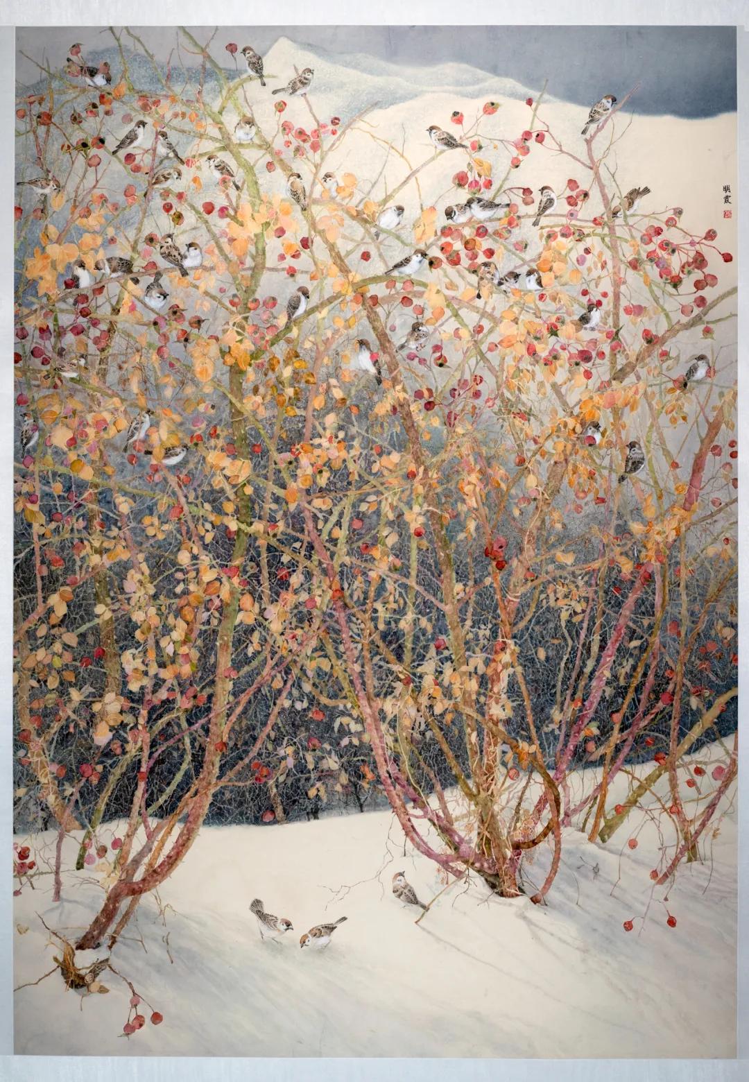 雪垄晴雀图 147 210CM 纸本设色 2025年