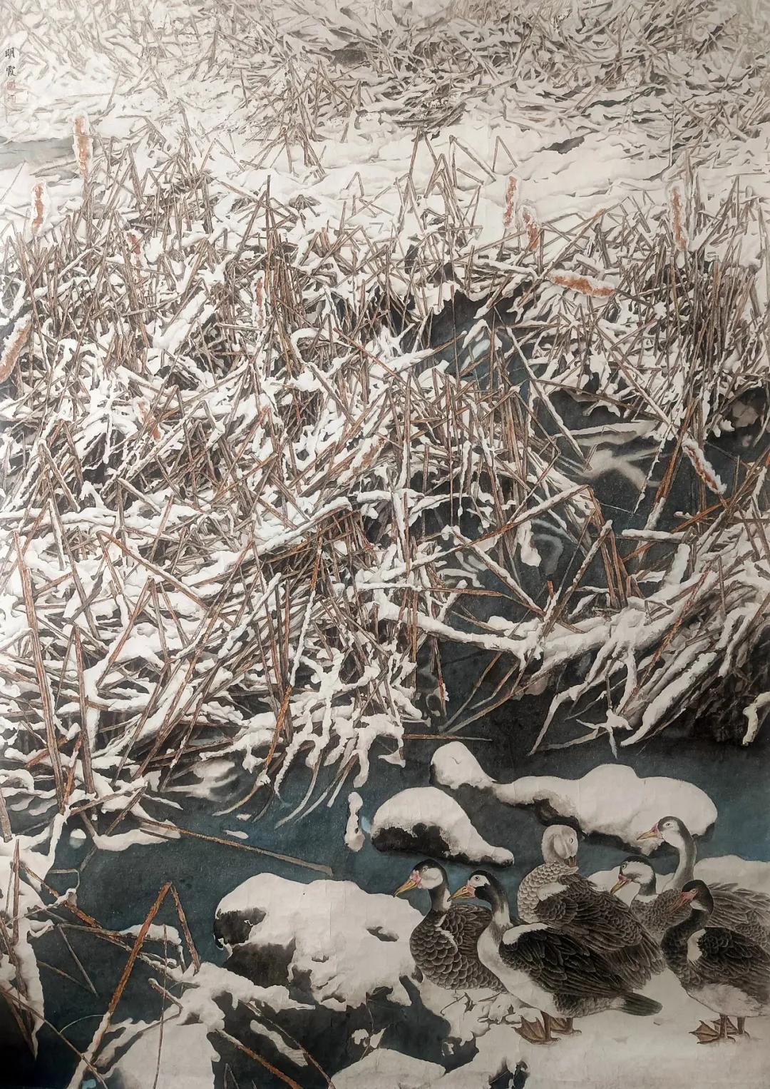 盛明霞 雪霁 69 149cm 纸本水墨 2023年