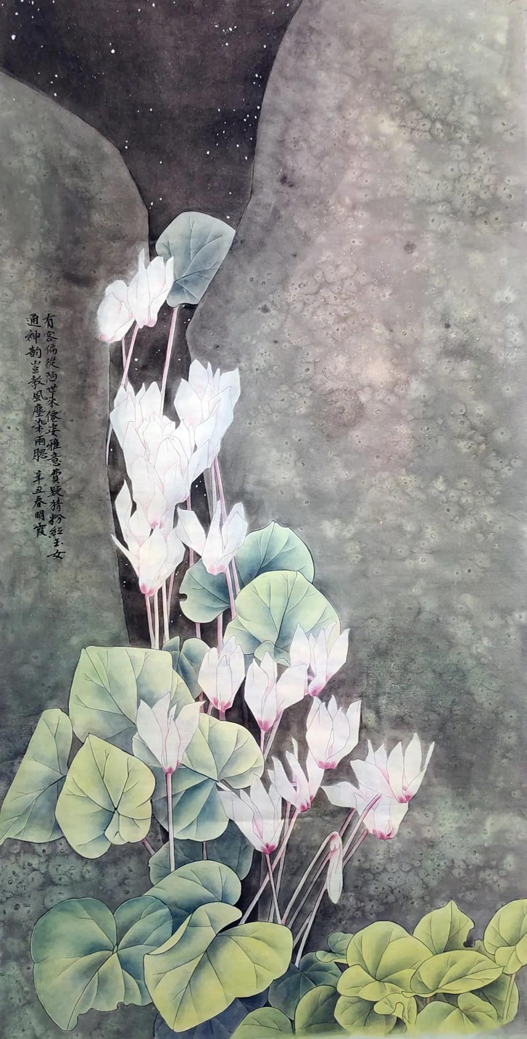 盛明霞,山东荣成人,中国女画家协会会员、山东省美协会员、山东省工笔画学会会员、威海市工笔画学会副秘书长、威海市经区美术家协会副主席。2025年结业于中国艺术研究院,师从于仁祝、刘海博导师。