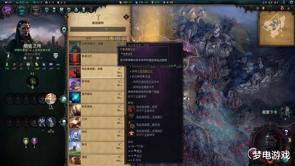 技能方面,王都领袖会有通用的吸血鬼技能和标志性技能,标志性技能大多数是被动,但非常实用,比如开局带神秘单位,增加某种兵种的伤害;通用技能则是围绕吸血鬼的几个技能进行加强的。