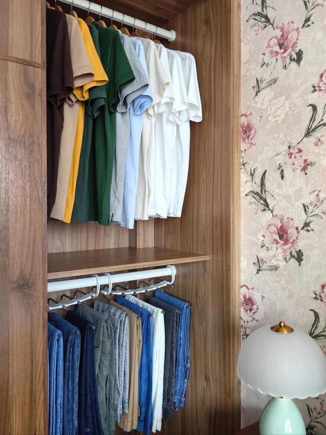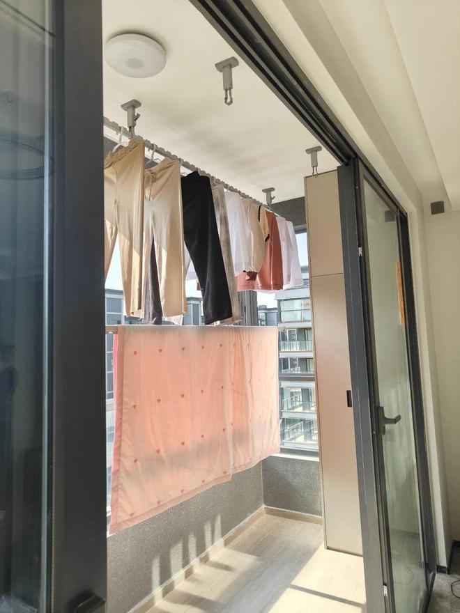 另外,晒干的衣服也会及时收进衣柜里,不会让它成为阳台上的“风景”,给空间徒增凌乱。
