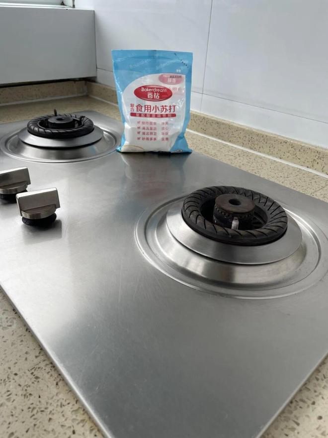 锅具、油烟机过滤网、炉头等物品,可以放水槽里,撒点小苏打再倒热水泡一会,简单一刷就干干净净。