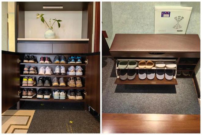 阿姨的习惯:进门脱下来的鞋子,第一时间就要收进鞋柜里,甚至拖鞋都有专属的收纳区。