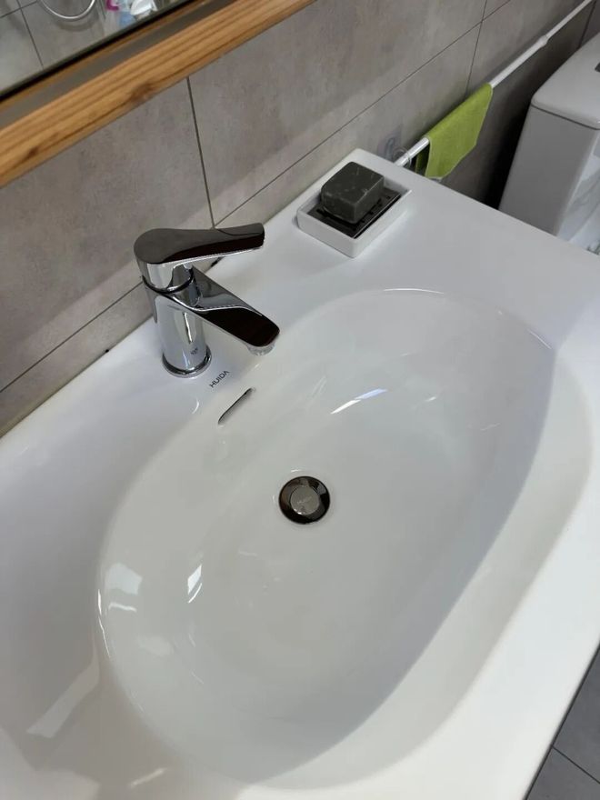 好处是:水龙头永远不会结水垢,台面缝隙处不会发霉,面盆也不会发黄发黑,每天都能保持着刚用完的干净状态。