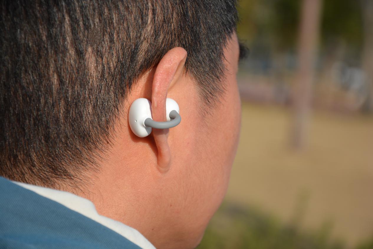 虹觅Air2这耳夹式的设计上就很优秀,采用 2.5mm错位设计,前高后低,刚好贴合我们耳廓的自然曲线,佩戴非常稳。