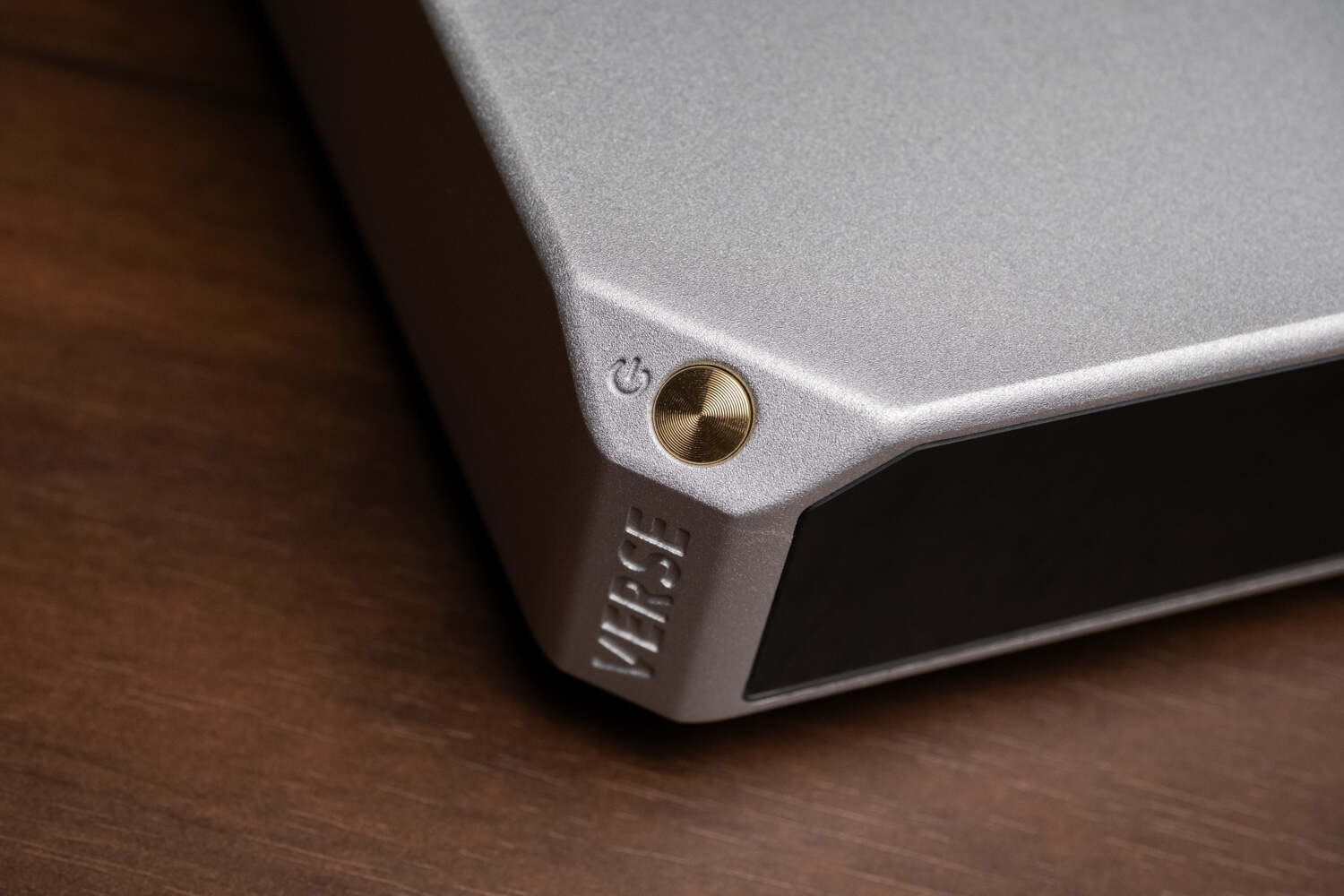 另一方面,VERSE的外观雕琢是很考究的,虽然一眼看上去像台小MAC,但在一些视觉的关键点上总能有吸引眼球的优秀设计,比如机身最左侧的多面体切割构成了独特的形状和对应的光影效果,这枚圆形微凸的电源键与下方的VERSE型号凹刻,能够一下子把观众的眼睛吸引过去,侧面凸显了视觉设计功力。而外形上更突出的优势是“小”,作为高品质的一体机,VERSE这样的体型放在器材架上连一半的面积都占不到,更适合放在桌面上、电脑显示器旁边之类的位置,既美观,也能给桌面空间不宽裕的HiFi玩家节省不小的位置。