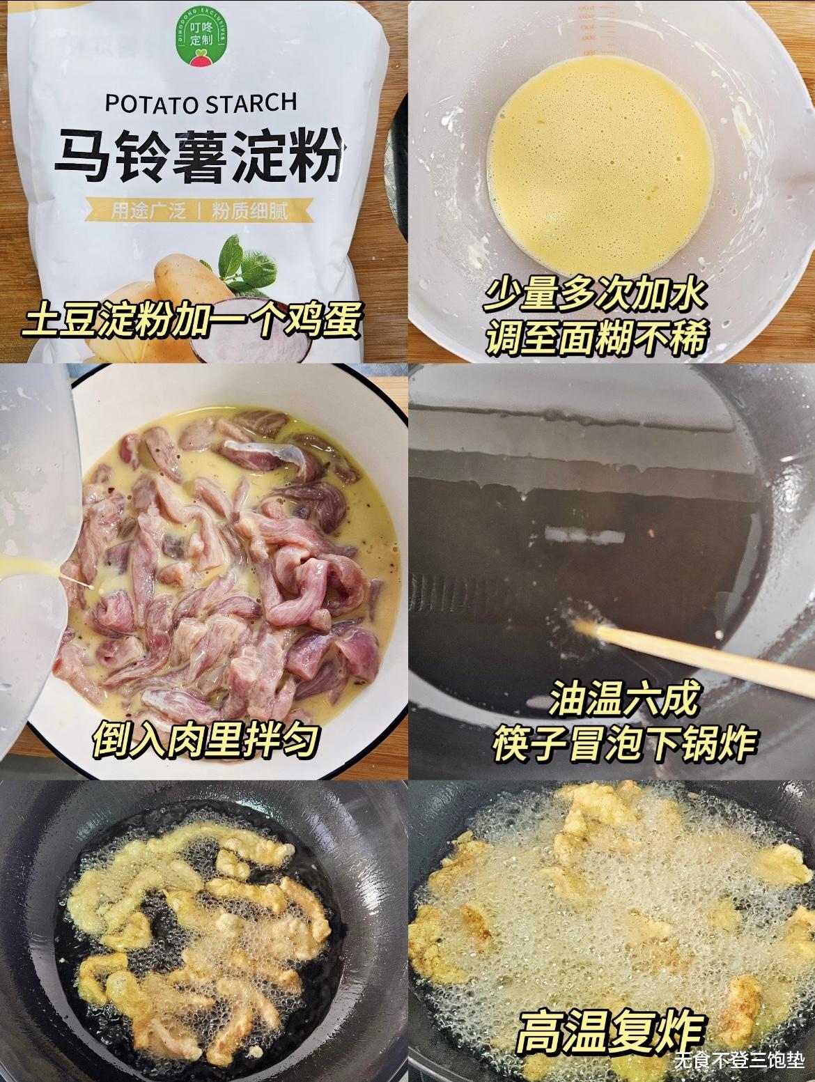 粉要这样配:“红薯淀粉是秘密武器”。相比普通淀粉,红薯淀粉炸出来更酥脆,放凉也不容易回软。比例很重要:淀粉和面粉3:1,再加少许泡打粉增加蓬松度。调糊有讲究:用啤酒代替水调糊,啤酒中的二氧化碳能让面糊更轻盈酥脆。调到浓稠度像酸奶一样,能挂在肉条上就行。
