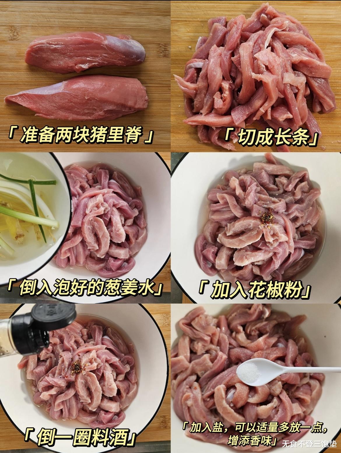 “美味全靠腌制功夫”。肉条加花椒粉、盐、料酒、生抽抓匀,然后重点来了:加入少许姜葱水,顺着一个方向搅拌,让肉吃进水分。最后打个鸡蛋抓匀,锁住水分。关键点:喜欢麻味的可以多加花椒粉,但一定要用现焙的花椒现磨,香味才够足。
