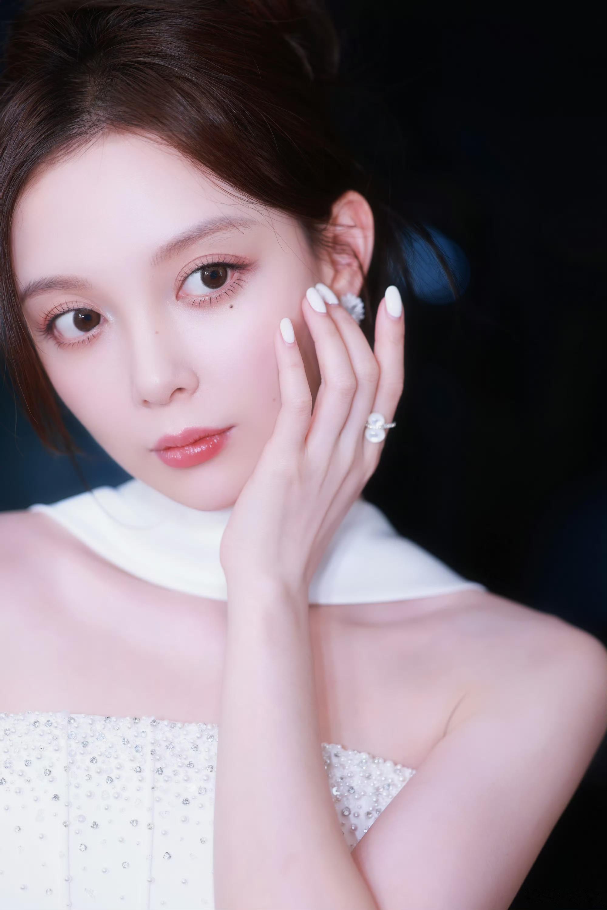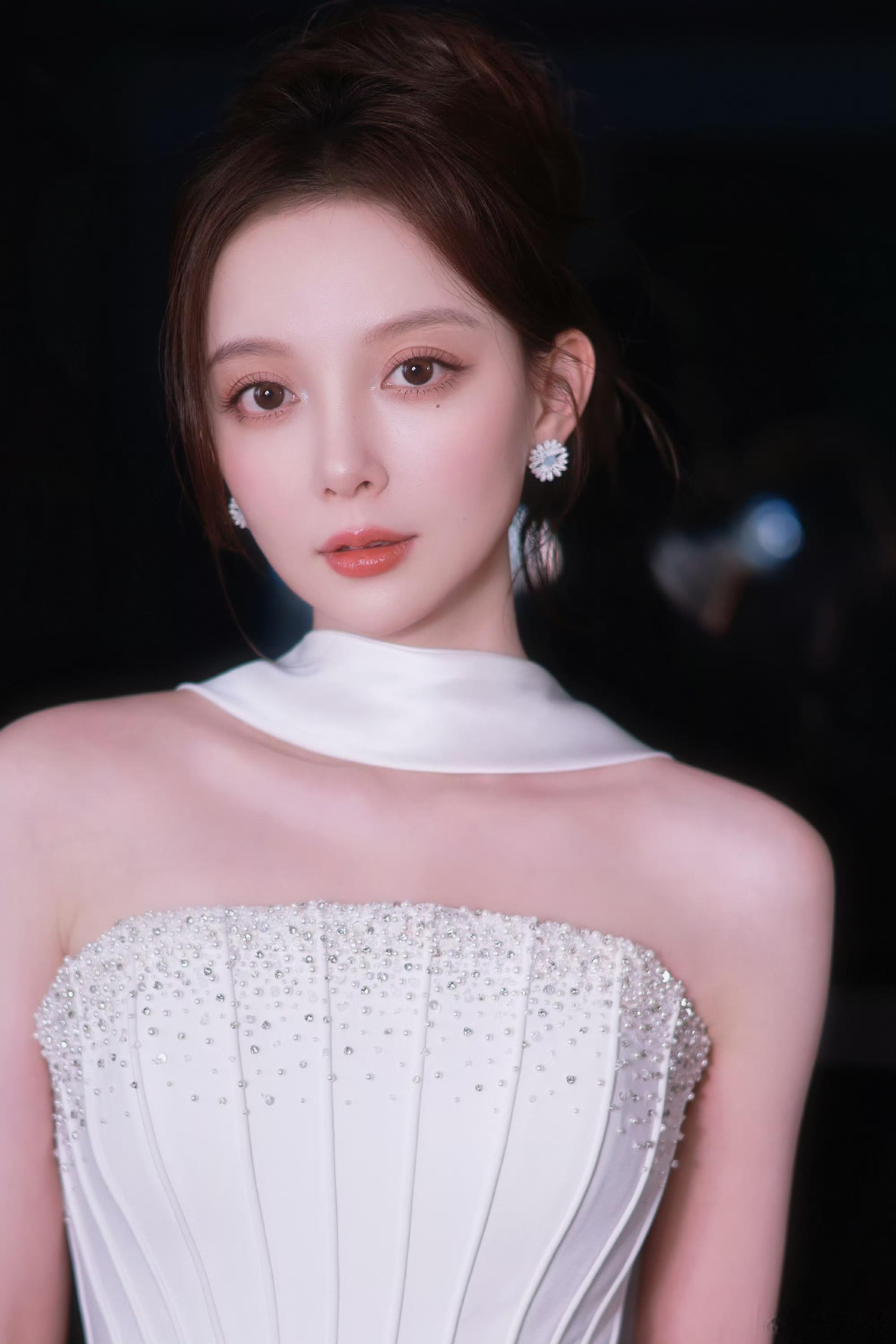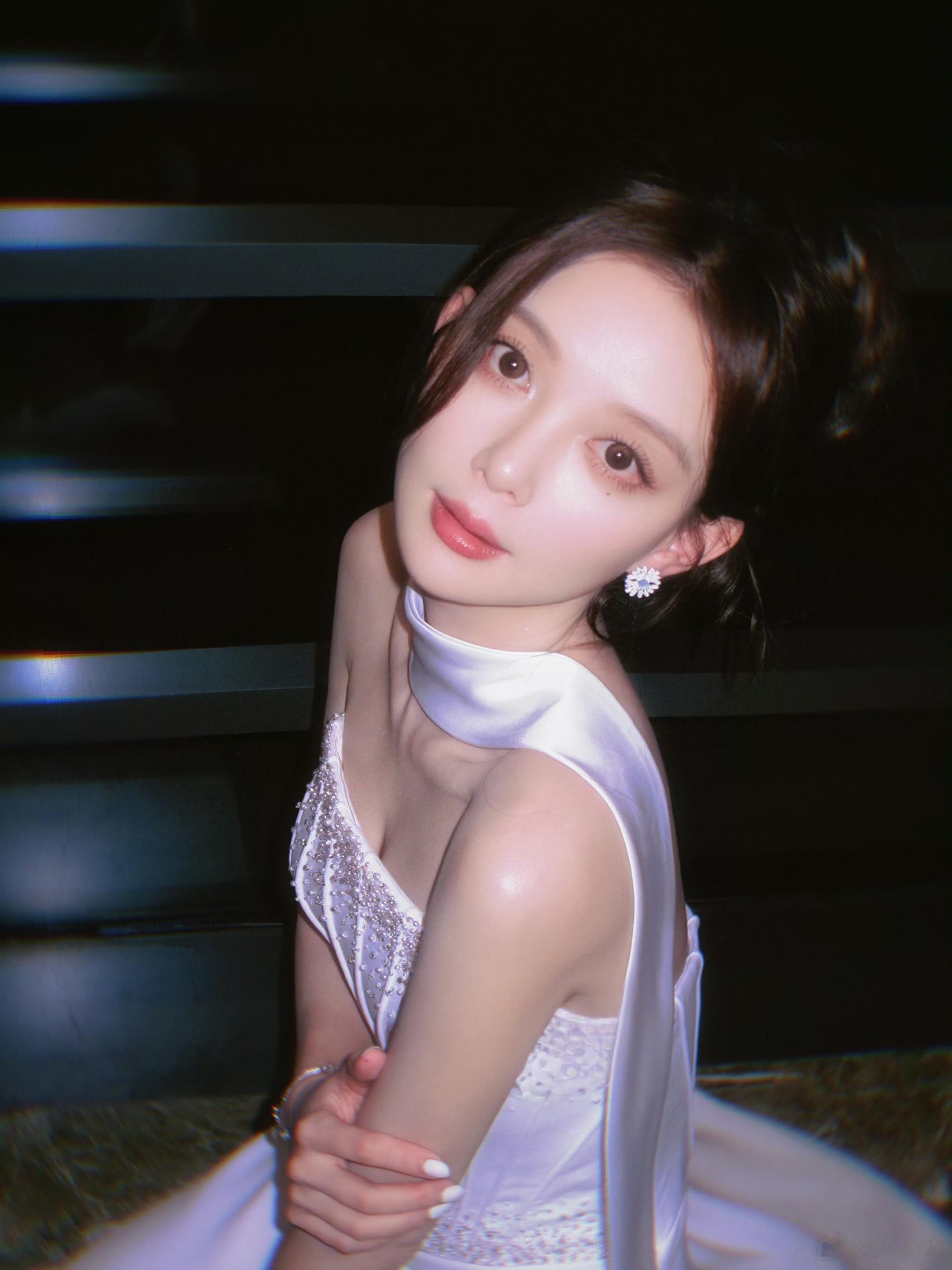 汪小敏纯白挂颈抹胸连衣裙