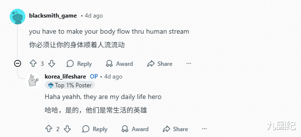 另一位网友评论说,「你要让自己的身体顺着人流动起来」