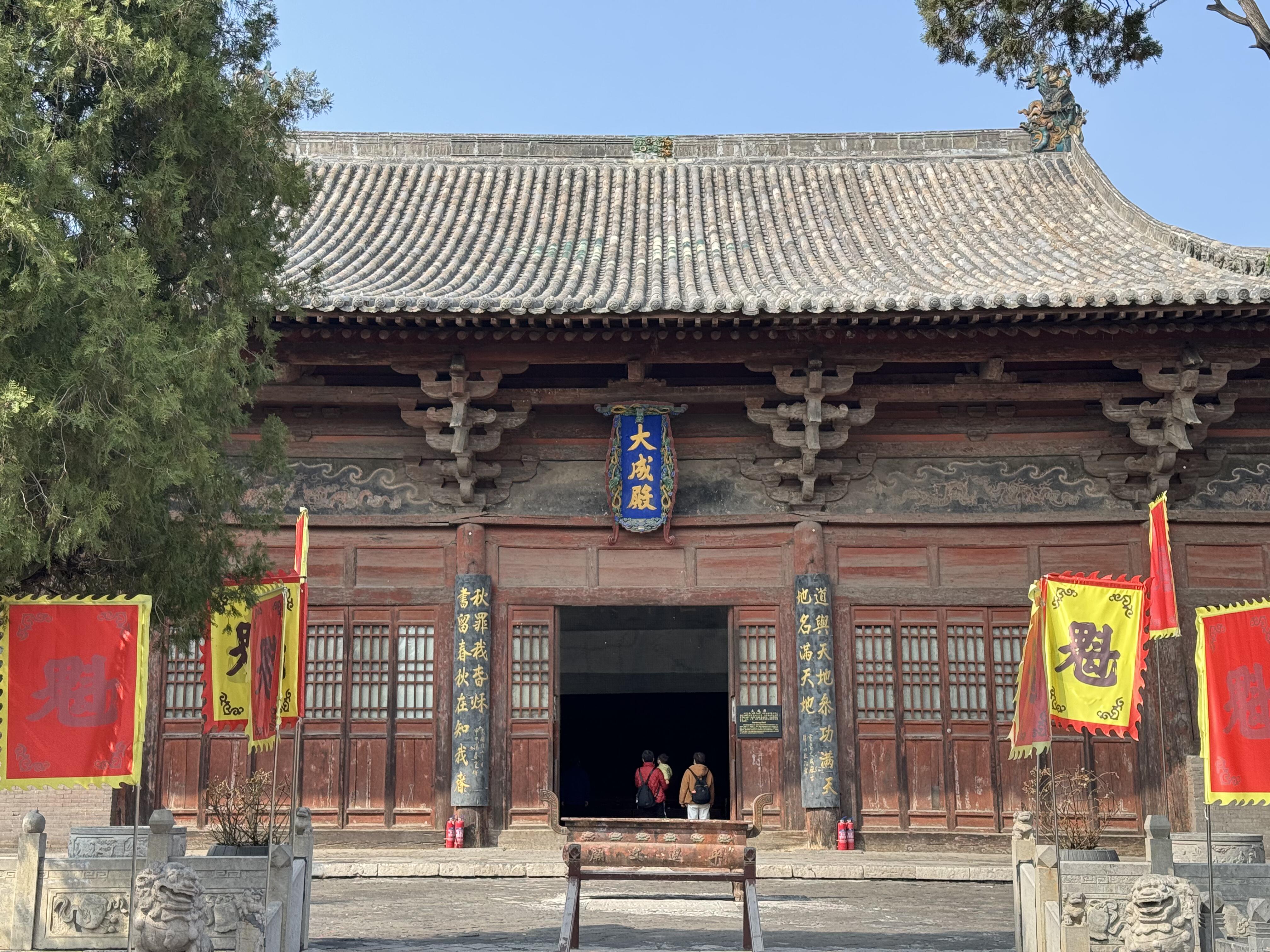 站在平遥文庙的庭院中,大成殿的飞檐与蓝天白云相映成趣。殿前的古柏虬枝苍劲,树影婆娑间,似乎能看见八百多年前工匠们挥汗如雨的身影,听见祭祀仪式上的钟磬之声。这座有确切纪年的古老建筑,不仅是平遥古城的文化地标,更是中华文明传承的重要见证。它以沉默的姿态,诉说着建筑技艺的代代相传,记录着文化交融的历史脉络,等待着更多人走进它的世界,读懂它承载的时空密码。