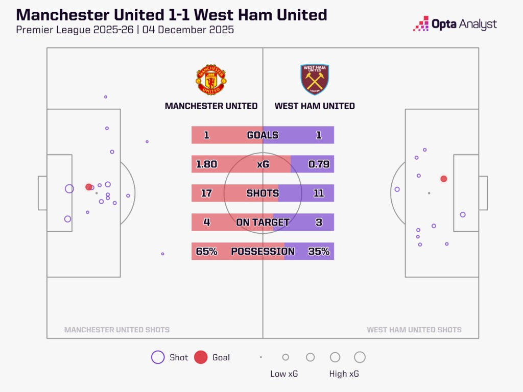 比赛预测:数据仍更倾向曼联尽管存在主场与历史因素,Opta 超级计算机仍然更看好曼联延续连胜势头。在 10,000次模拟中,曼联取胜概率为 47.0%,西汉姆联为 28.6%,平局占 24.4%。