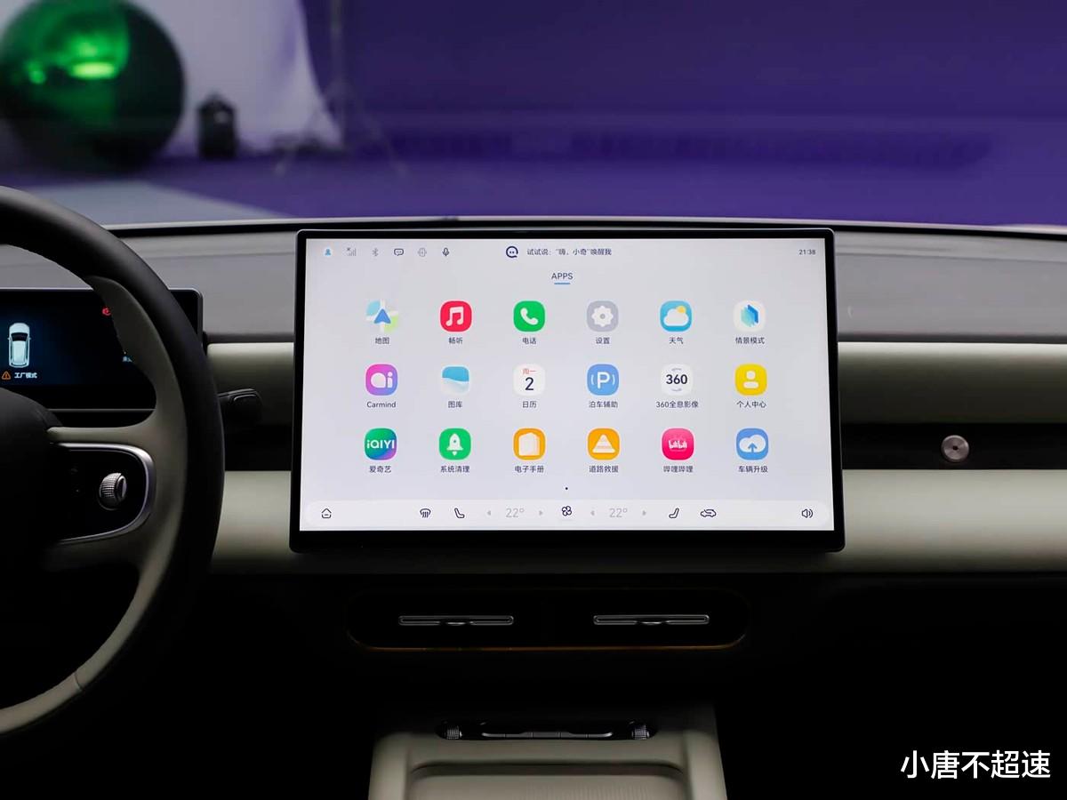 内饰设计较为简洁,配备全液晶仪表和15.6英寸悬浮式中控屏,内置高通骁龙8155芯片,支持AI语音交互、多场景模式以及手机互联功能。配置方面已知包括256色氛围灯、手机无线充电、前排座椅通风加热及方向盘加热等。