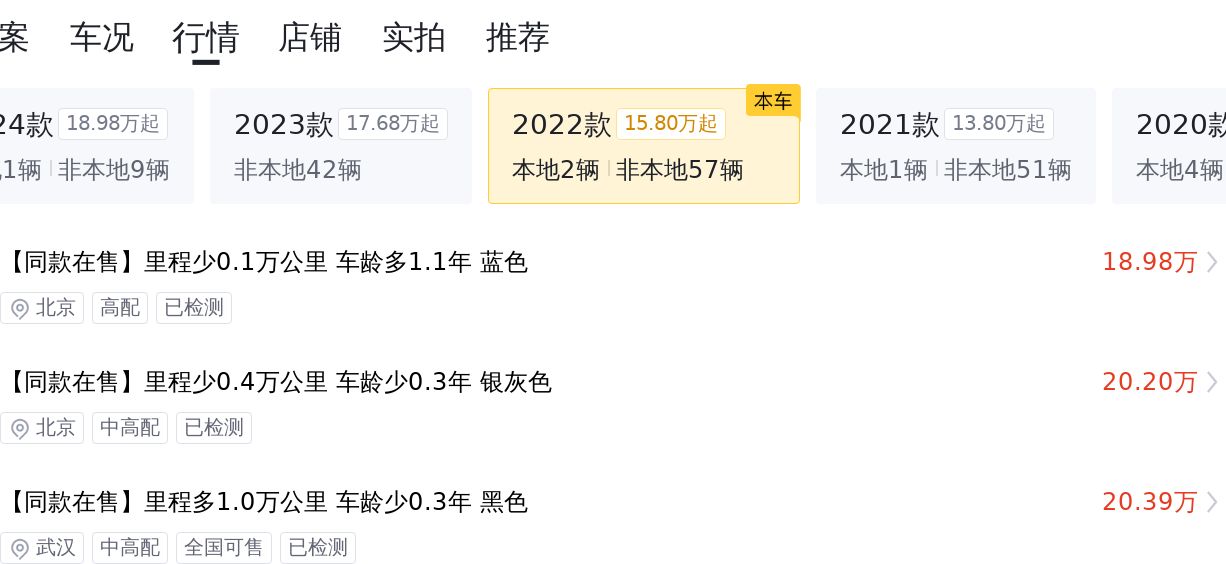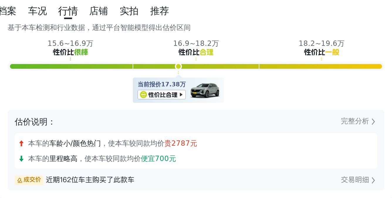 最后,结合这款车的车龄、里程、车况等因素,当前的市场行情下,这款车的售价在17.07-20.51万之间,具体的售价就看买家和卖家怎么谈了。