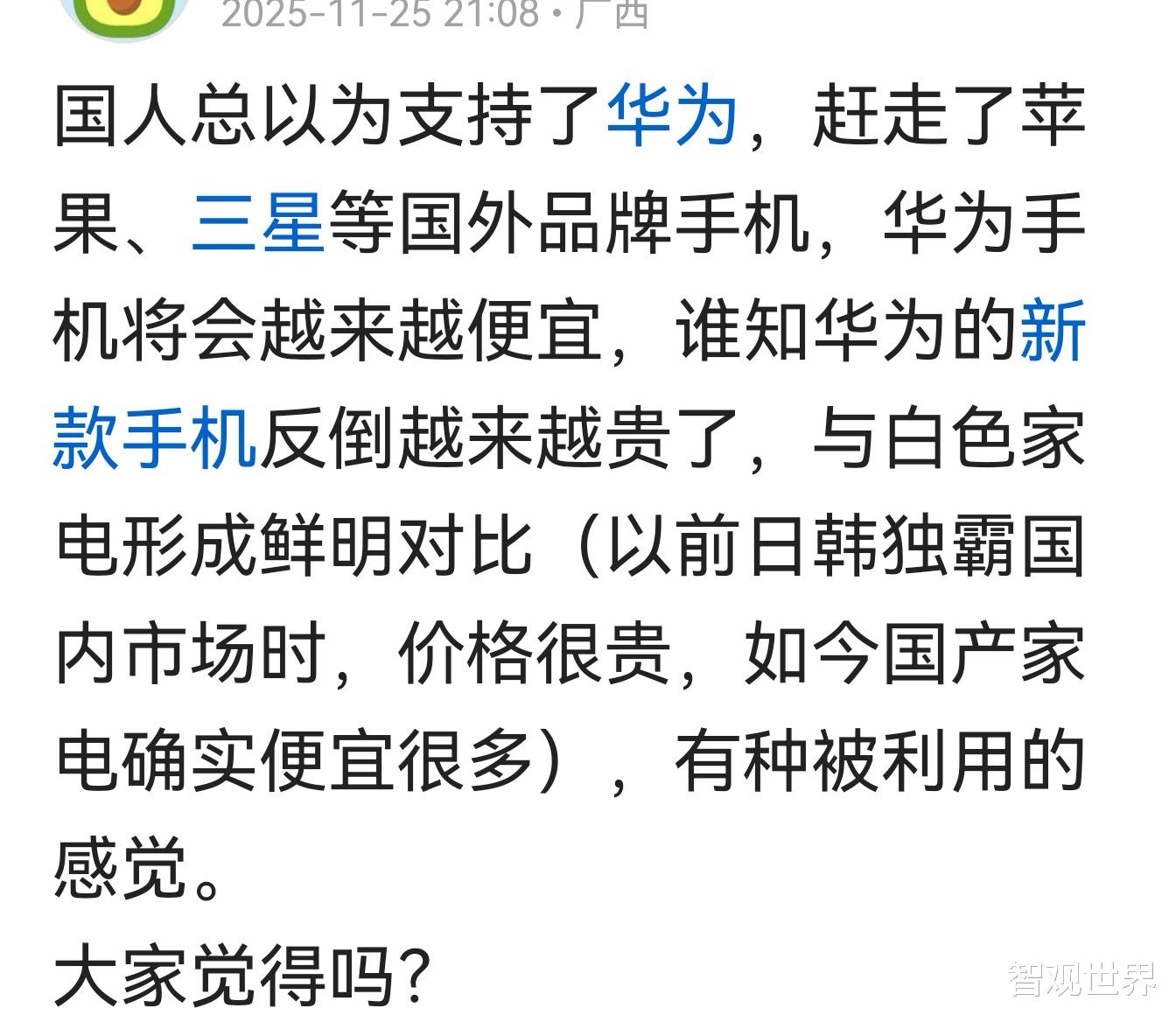 说句不好听的,华为如果卖的便宜了,其他牌子生存空间将会被挤压,其他手机商没几个愿意让华为降价的。