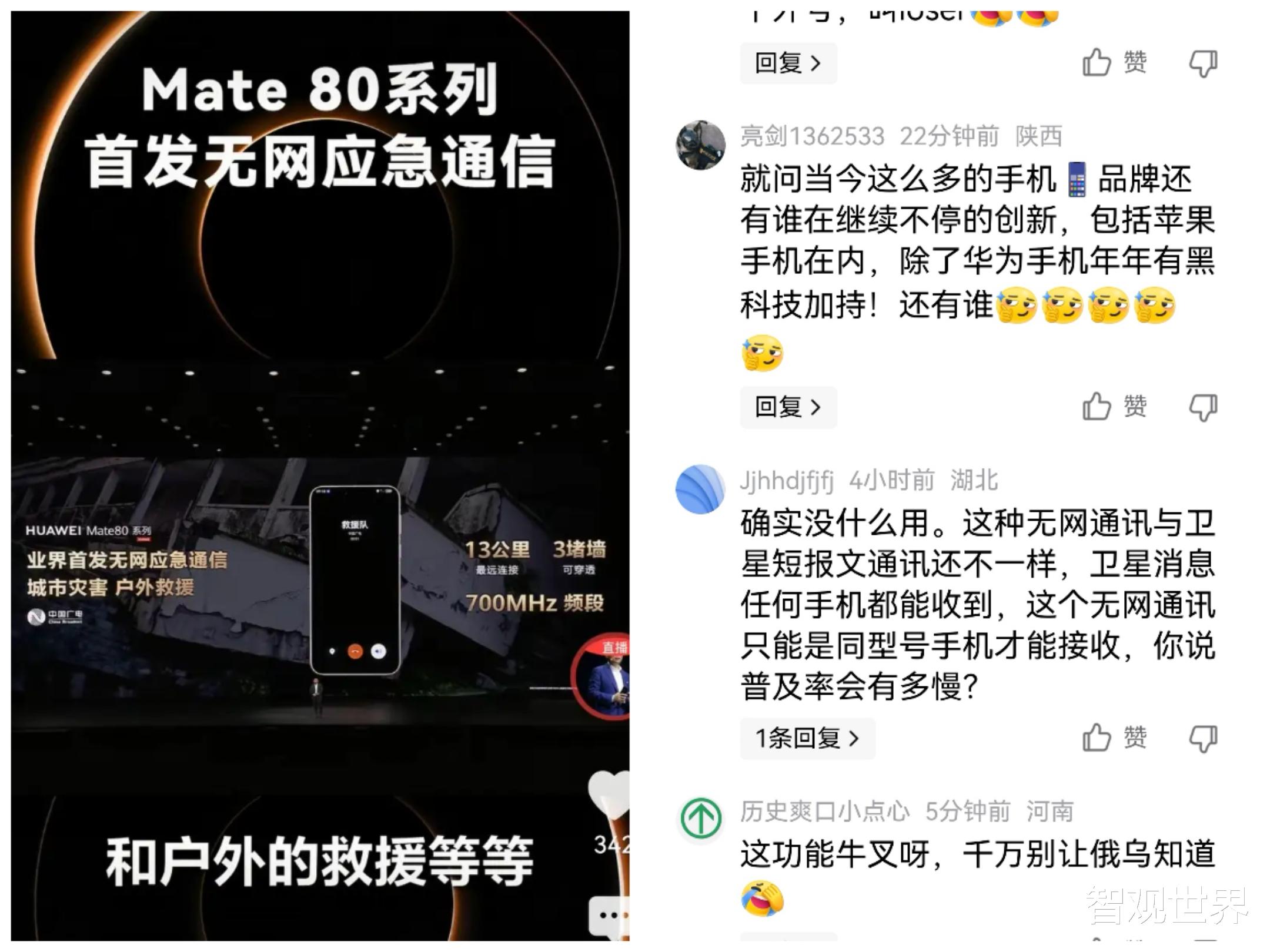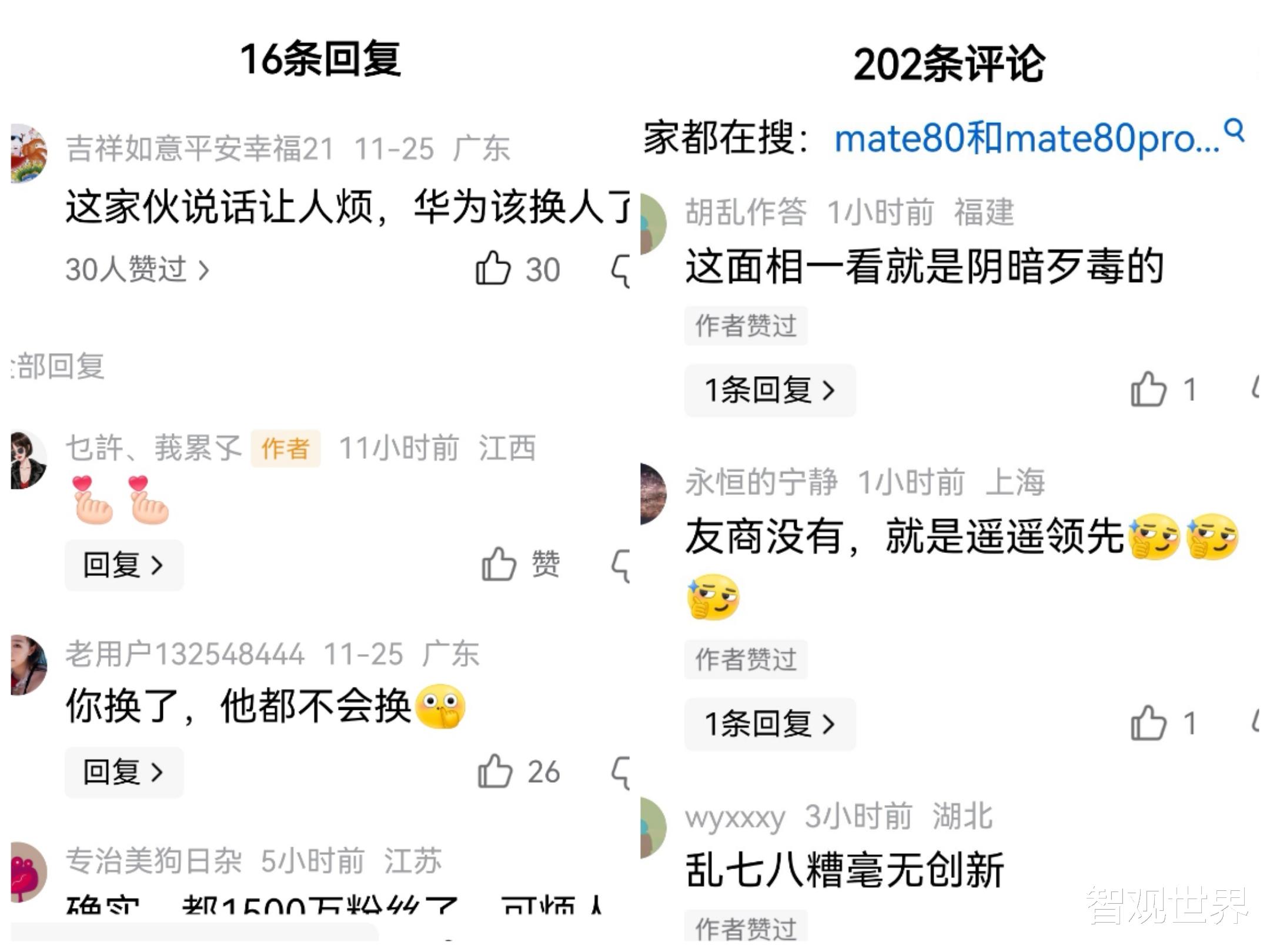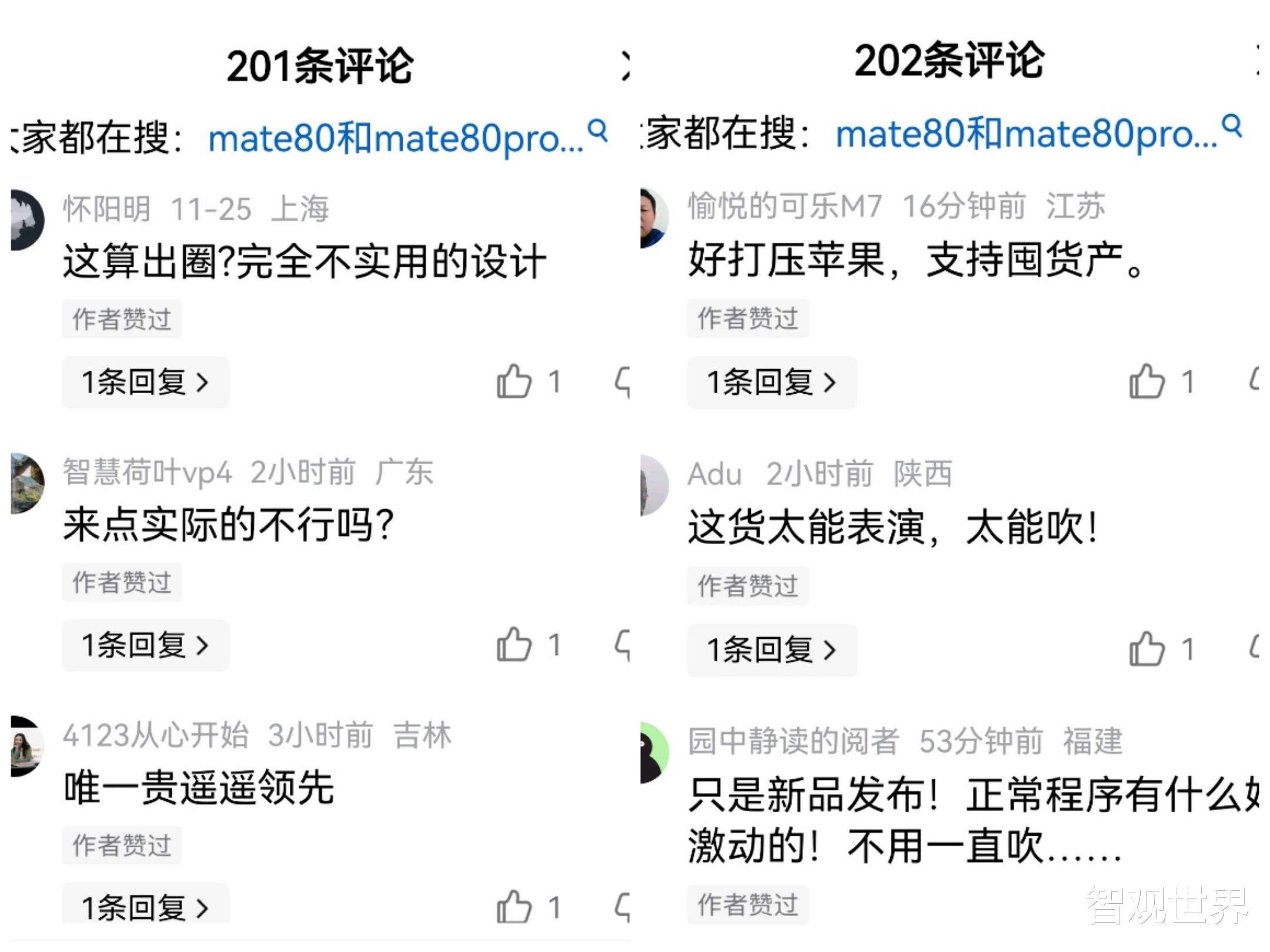 华为MATE80发布了,最远可达十几公里的无网应急通讯等不可思议的创新、3D TOF人脸技术、精心的设计和制作工艺,再加上满满诚意的4600+起售价,让期待已久的消费者自然是赞誉声一片,但也出现了一些质疑、反对和诋毁的声音,那么发出这种声音的都是些什么人呢?细细的查看和阅读各处相关评论,分析总结了一下,大概主要有以下几类群体吧: